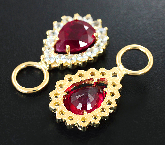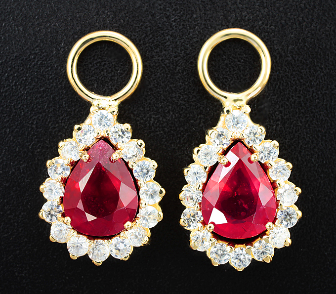 Подвески для серег с рубинами 4,75 карата и бесцветными цирконами