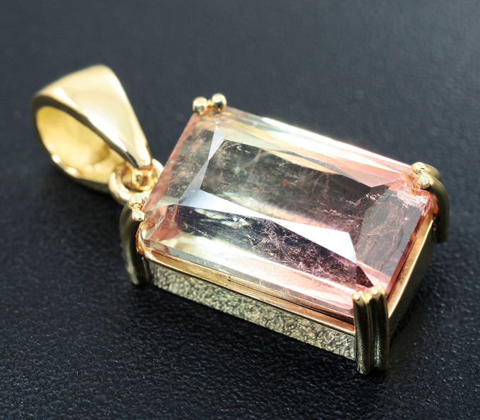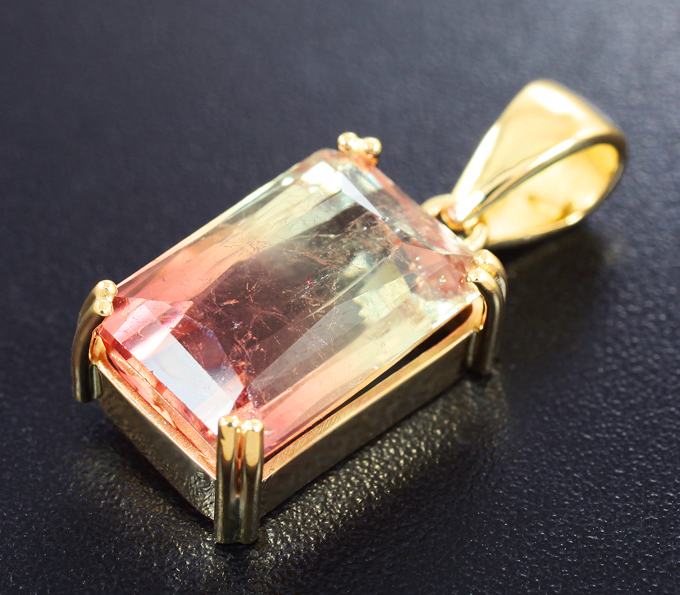 Вашему вниманию предлагается кулон из желтого золота 585 пробы с полихромным турмалином! Размеры кулона с петлей 23 х 10 мм. Вес изделия 3,2 г. Ниже приводятся ювелирные характеристики вставки.