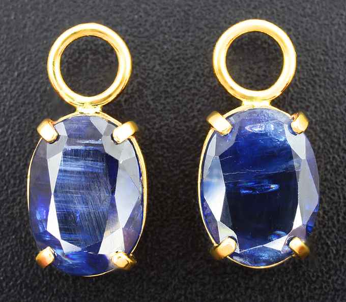 Вашему вниманию предлагаются подвесы для серег из желтого золота 585 пробы с кианитами! Размеры изделия 17 х 8 мм. Вес пары 2,46 г. Ниже приводятся ювелирные характеристики вставок.