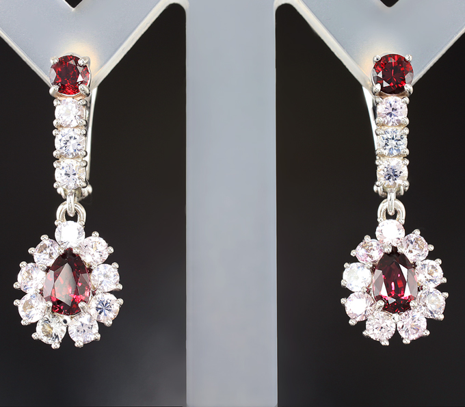 Вашему вниманию предлагаются серьги из белого золота 585 пробы с рубиновыми и пурпурно-розовыми шпинелями! Размеры серег с петлей 25 х 9 мм. Вес пары 4,3 г. Ниже приводятся ювелирные характеристики вставок.