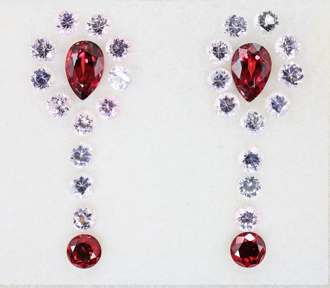 Серьги с рубиновыми и пурпурно-розовыми шпинелями 3,21 карата