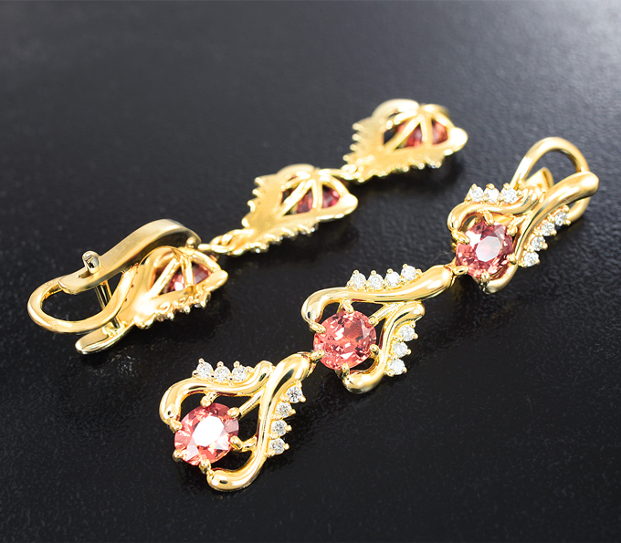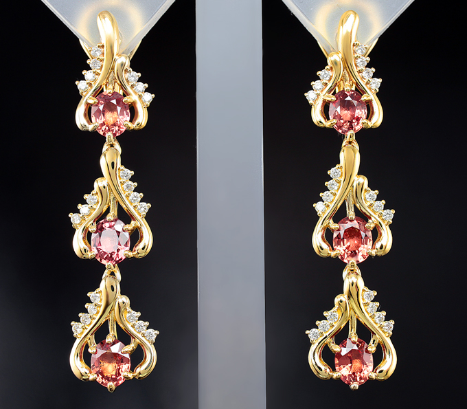 Серьги с падпараджа сапфирами 3,61 карата и бриллиантами