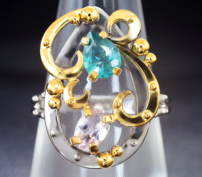 Кольцо c грандидьеритом 0,58 карата и морганитом