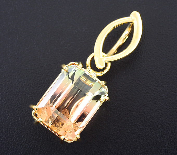 Вашему вниманию предлагается кулон из желтого золота 585 пробы с полихромным турмалином! Размеры кулона с петлей 26 х 11 мм. Вес изделия 2,8 г. Ниже приводятся ювелирные характеристики вставки.
