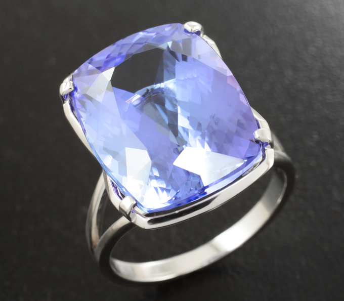 Вашему вниманию предлагается кольцо из белого золота 585 пробы с танзанитом! Размеры вставки 18 х 13 мм. Площадка 20 х 14 мм, высота 9 мм. Вес изделия 6,7 г. Размер 18. Ниже приводятся ювелирные характеристики вставки.