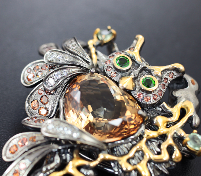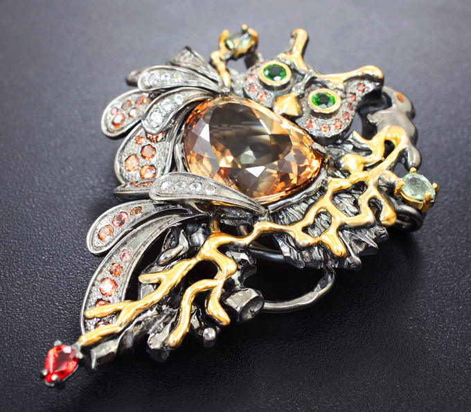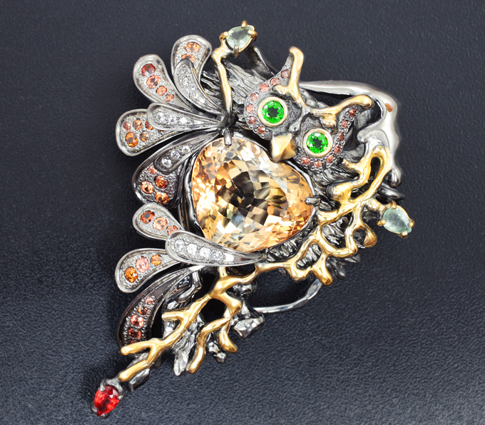 Серебряная брошь/кулон с империал топазом 18,4 карата и самоцветами
