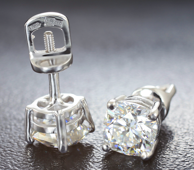Пусеты с муассанитами 2 карата