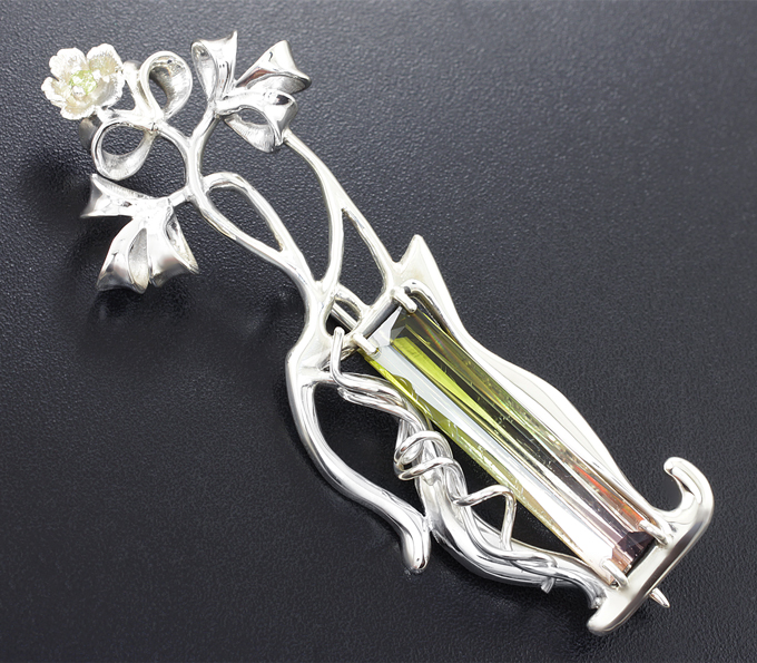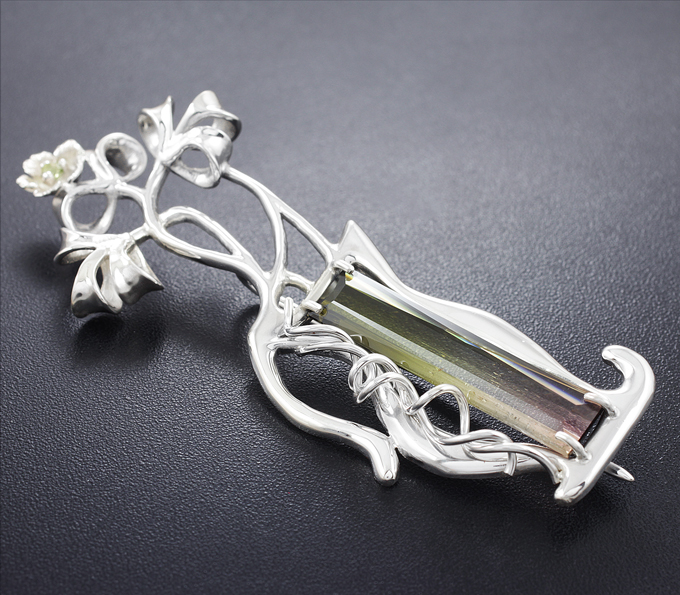 Вашему вниманию предлагается кулон из стерлингового серебра (925 проба) с арбузным турмалином и перидотами! Диаметр дополнительной инкрустации 2,5 мм. Площадка броши 68 х 22 мм. Вес изделия 9,3 г. Ниже приводятся ювелирные характеристики вставки.
