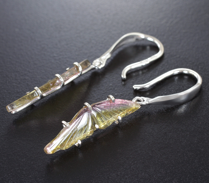Вашему вниманию предлагаются серьги из белого золота 585 пробы с арбузными турмалинами! Размеры серег с петлей 39 х 8 мм. Вес пары 2,4 г. Ниже приводятся ювелирные характеристики вставок.