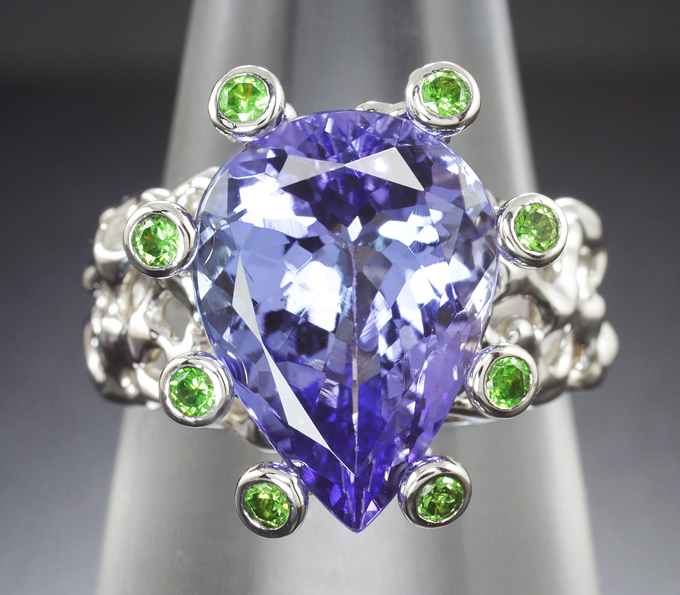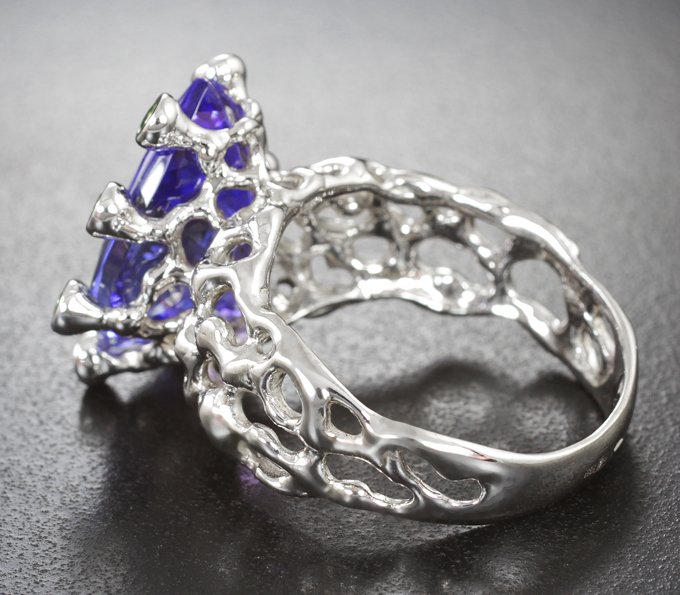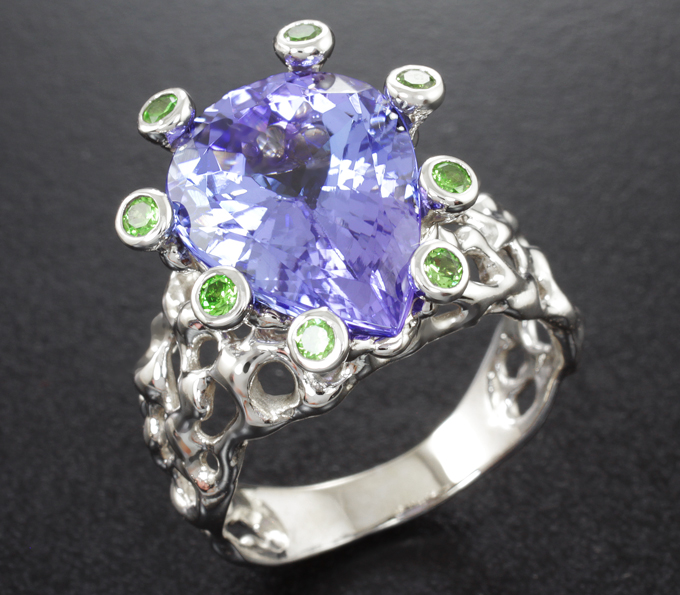 Кольцо с танзанитом 8,23 карата и демантоидами