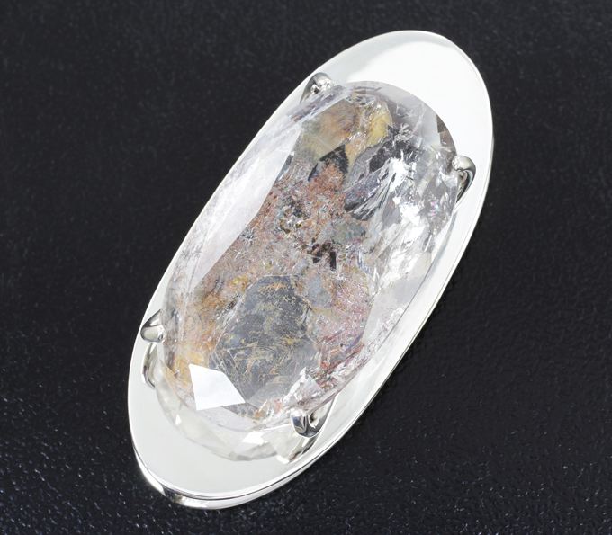 Вашему вниманию предлагается кулон из стерлингового серебра (925 проба) с кварцем с включением брукита и флогопита! Площадка кулона 40 х 18 мм. Вес изделия 11,1 г. Ниже приводятся ювелирные характеристики вставки.