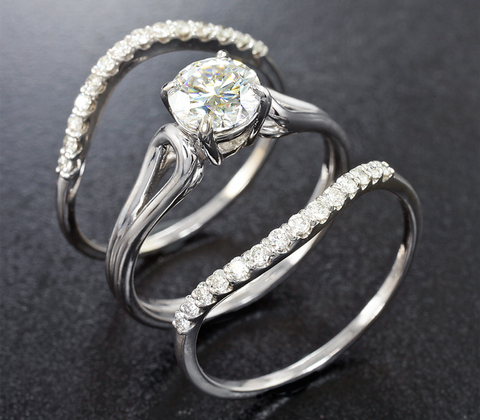 Набор из 3 колец с муассанитом 1 карат и бриллиантами
