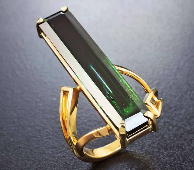 Кольцо с крупным изумрудно-зеленым турмалином 11,65 карата