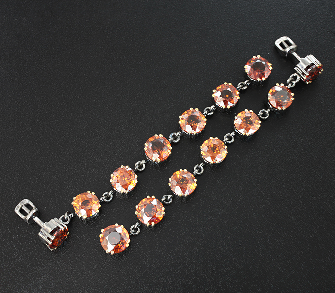 Вашему вниманию предлагаются серьги из стерлингового серебра (925 проба) с цирконами! Изделие с чернением и частичной позолотой. Площадка серег 84 х 7 мм. Вес пары 13,2 г. Ниже приводятся ювелирные характеристики вставок.