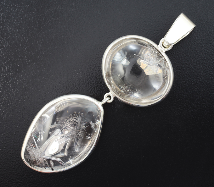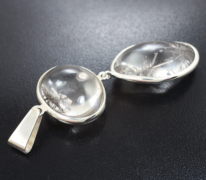 Кулон с редким кварцем с серебряным рутилом и пластинкой слюды 65,5 карата