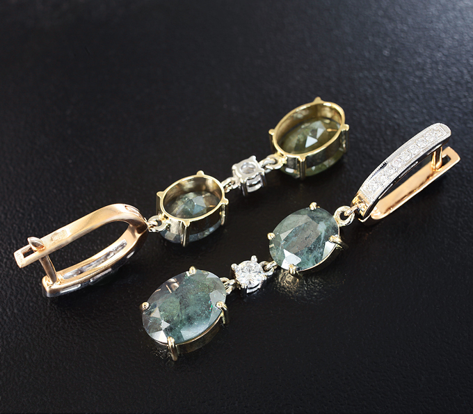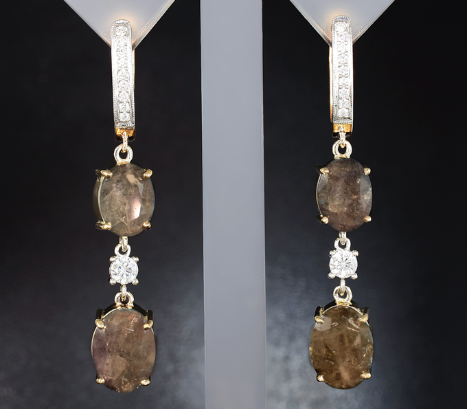 Серьги с уральскими александритами 13,64 карата и бриллиантами