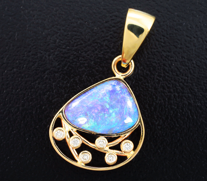 Кулон с австралийским solid опалом 1,24 карата и бриллиантами
