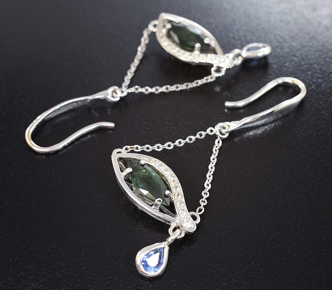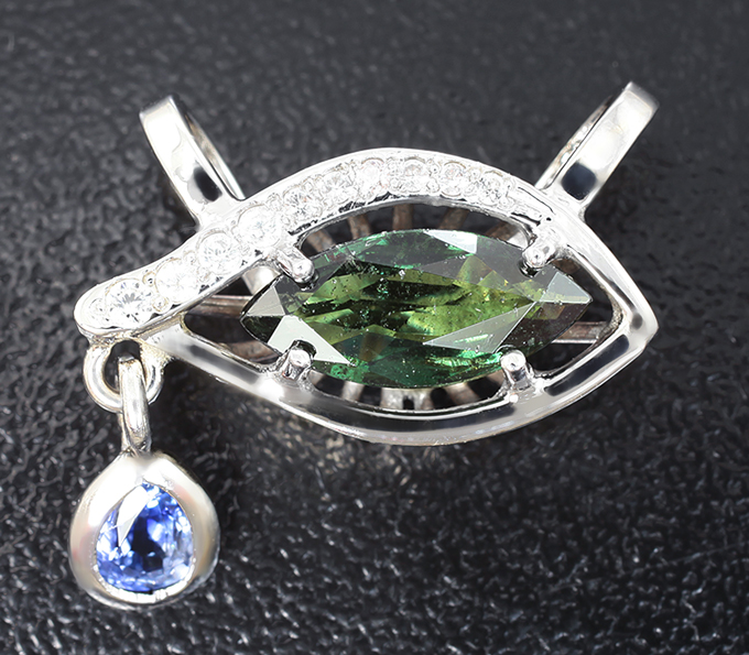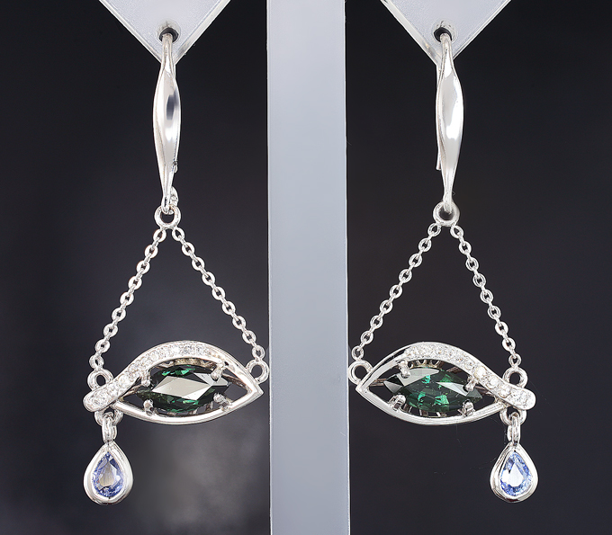 Вашему вниманию предлагается комплект (серьги + кулон) из белого золота 585 пробы с гранатами со сменой цвета, синими и бесцветными сапфирами! Диаметр дополнительной инкрустации от 1,1 мм до 4,5 х 3,5 мм. Вес комплекта 6,6 г.