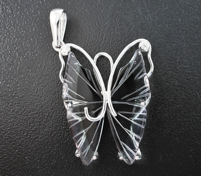 Кулон с резными полихромными турмалинами 7,63 карата и бесцветными цирконами