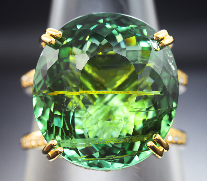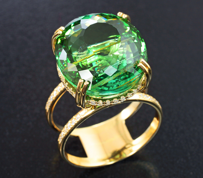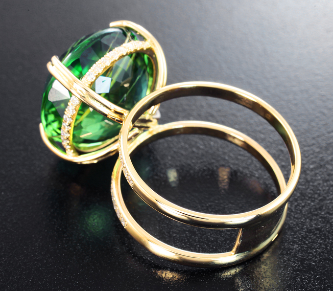 Кольцо с зеленым турмалином 22,88 карата и муасанитами