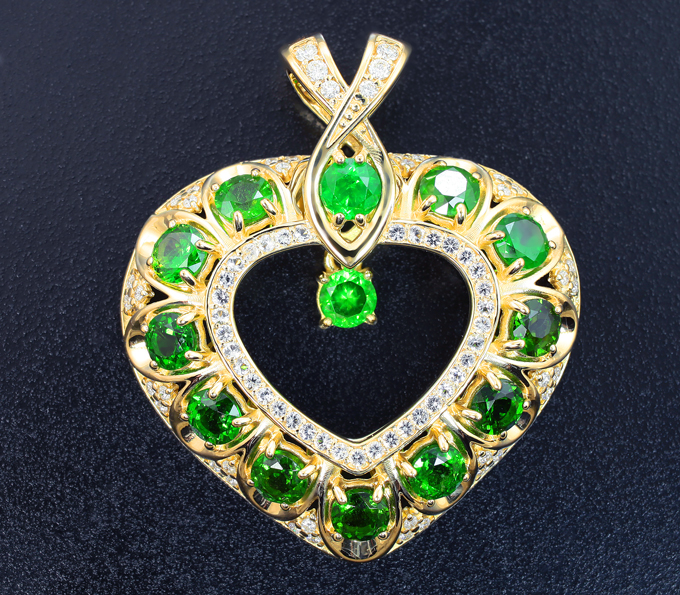 Кулон с диопсидами 2,31 карата, уральскими демантоидами 1,74 карата, топазами и бриллиантами