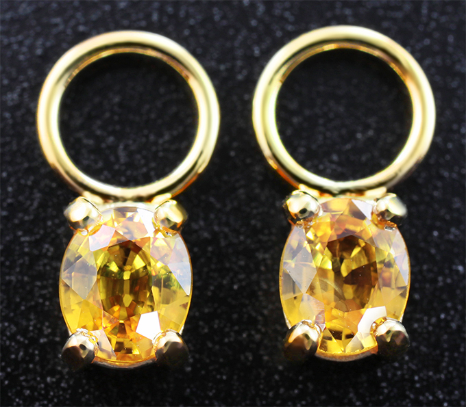 Вашему вниманию предлагаются подвесы для серег из желтого золота 585 пробы с сапфирами! Размеры изделия 12 х 7 мм. Вес пары 1,3 г. Ниже приводятся ювелирные характеристики вставок.