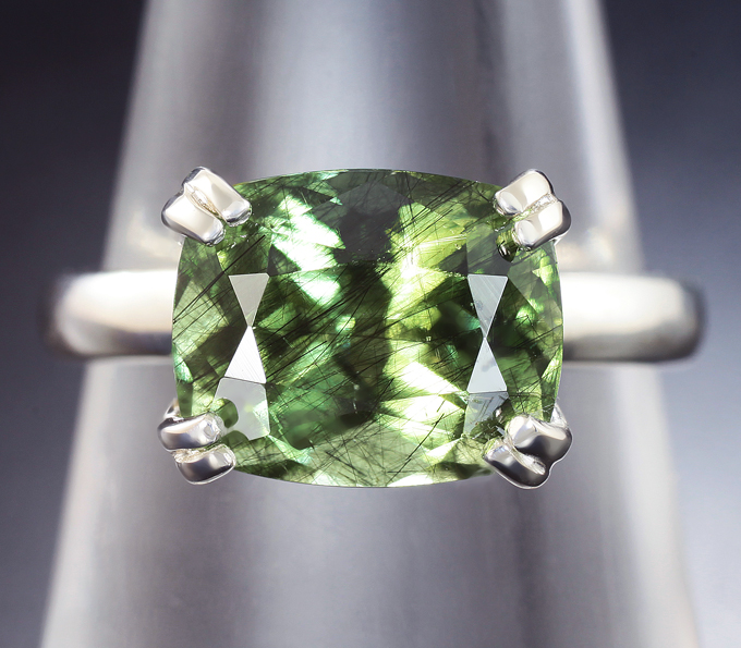 Вашему вниманию предлагается кольцо из стерлингового серебра (925 проба) c перидотом с рутилом! Площадка 11 х 9 мм, высота 9 мм. Вес изделия 4,1 г. Размер 18. Ниже приводятся ювелирные характеристики вставки.