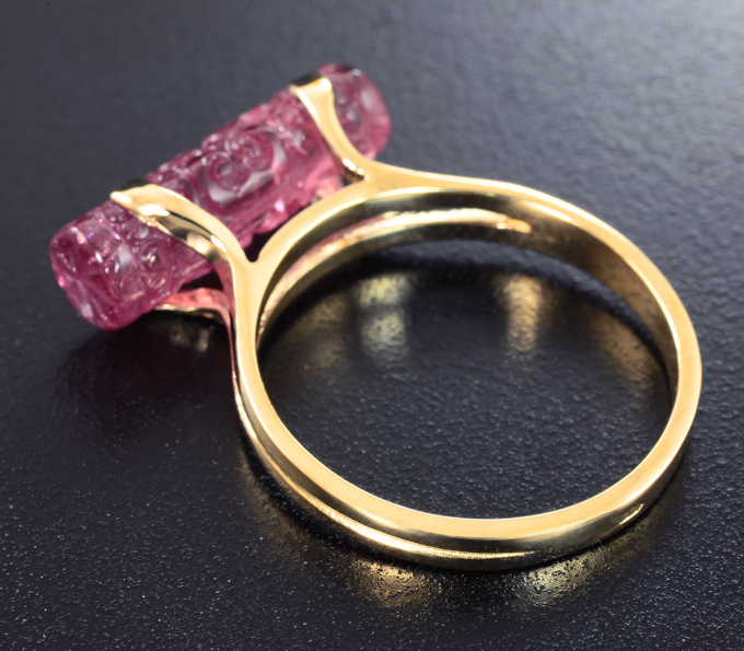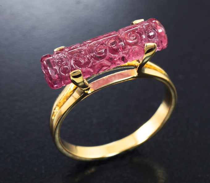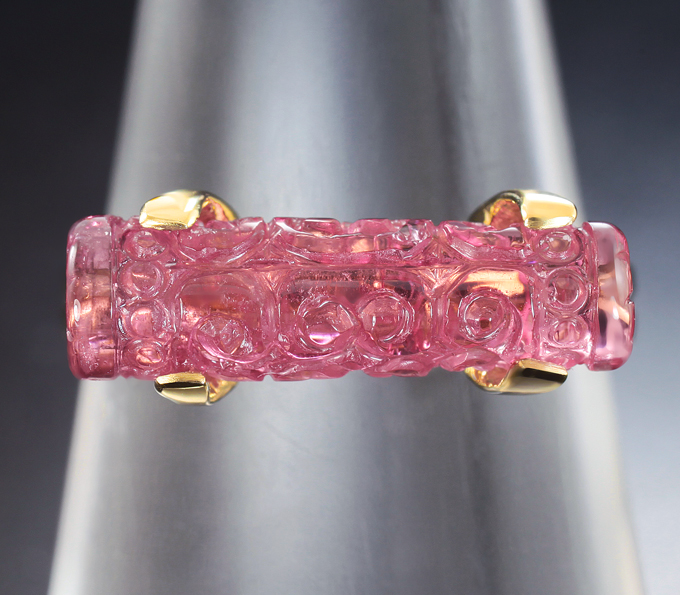 Кольцо с рубеллитом турмалином с резьбой по всей окружности 4,66 карата