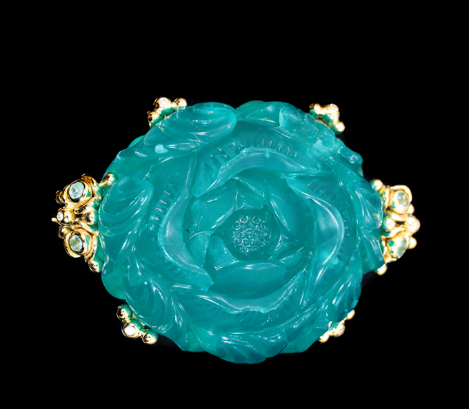 Брошь/кулон с резным амазонитом 87,86 карата, апатитами и бриллиантами