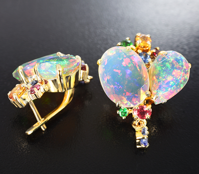 Серьги с ограненными эфиопскими опалами 11,82 карата, диопсидами, танзанитами, цаворитами и разноцветными сапфирами
