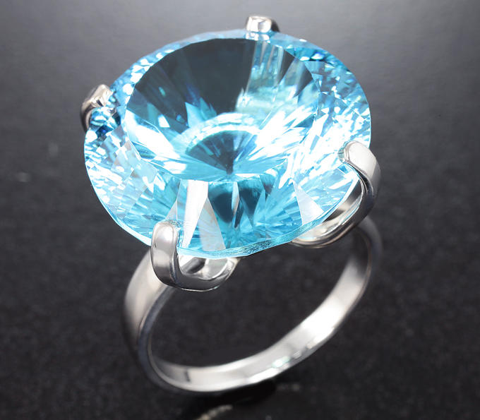 Кольцо с голубым топазом лазерной огранки 27,92 карата