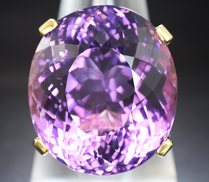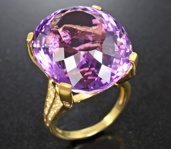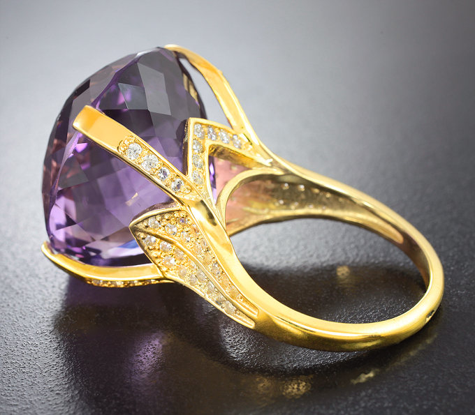 Кольцо с крупным аметистом 42,99 карата и бесцветными цирконами
