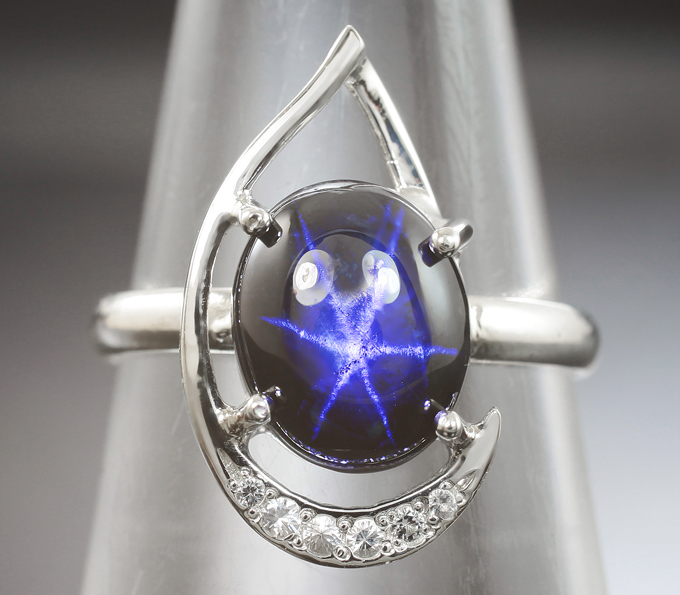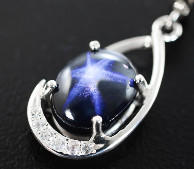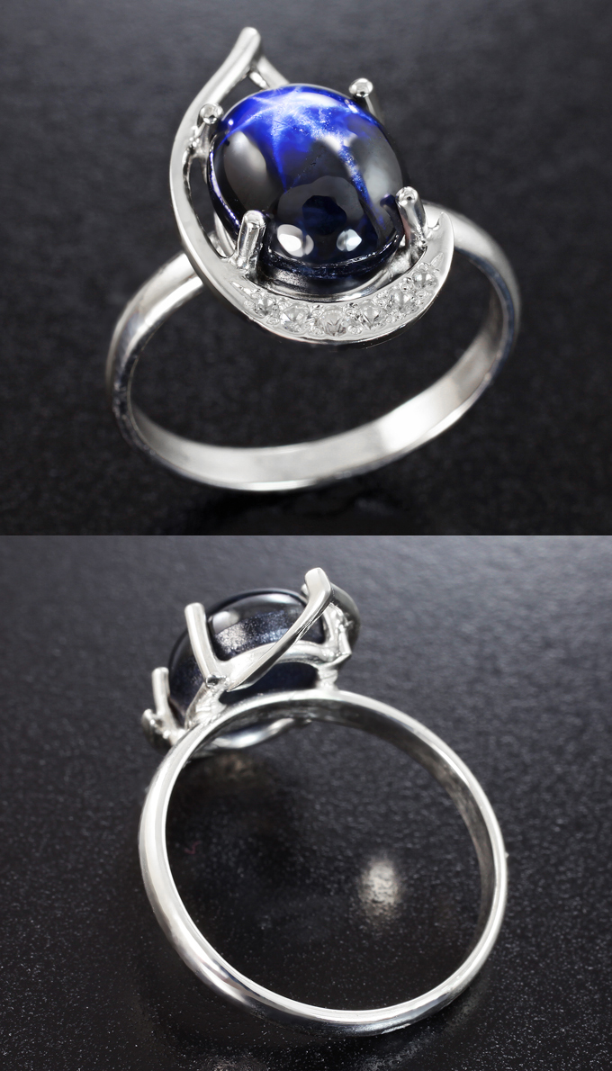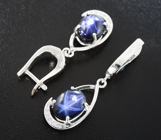 Комплект со звездчатыми сапфирами 14,97 и бесцветными цирконами