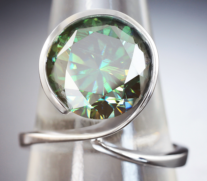 Кольцо с зеленым муассанитом 6,64 карата