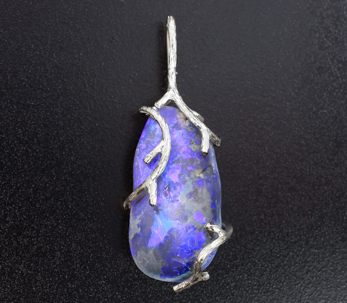 Вашему вниманию предлагается кулон из белого золота 585 пробы с австралийским solid опалом! Основные цвета опалесценции: синий и фиолетовый. Площадка 44 х 17 мм. Вес изделия 7,1 г. Ниже приводятся ювелирные характеристики вставки.