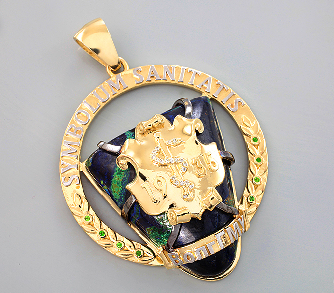Кулон с малахитом в азурите 62,7 карата, диопсидами и бриллиантами