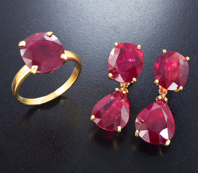 Вашему вниманию предлагается комплект (кольцо + серьги) из желтого золота 585 пробы с рубинами 34 карата! Размеры вставок от 13 х 11 мм до 15 х 11 мм Вес комплекта 13,2 г.