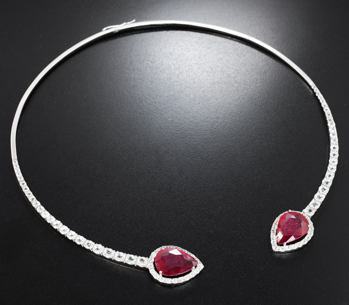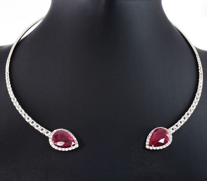 Колье с рубинами 17,67 карата, бесцветными цирконами и топазами