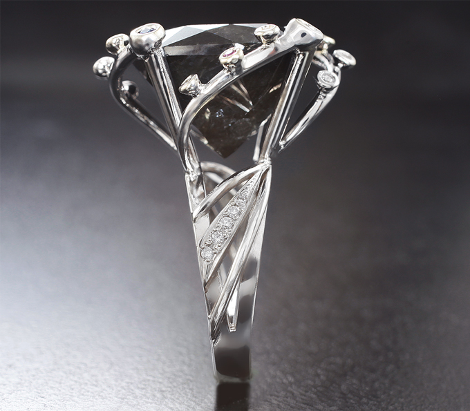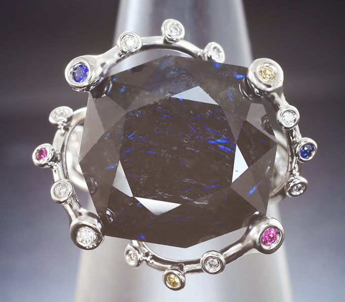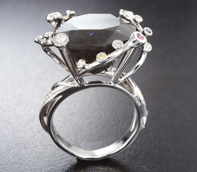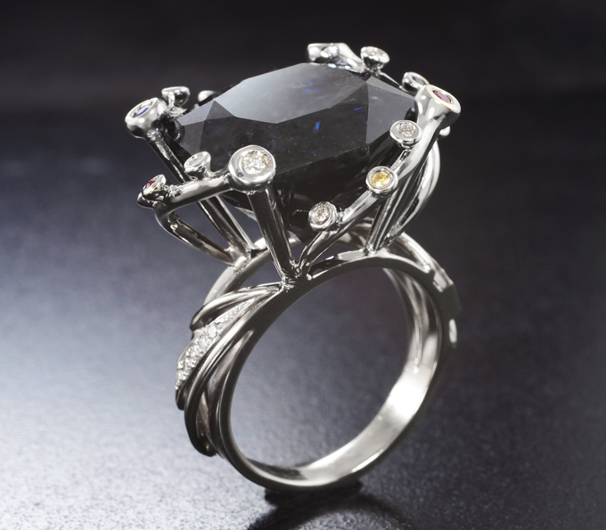 Кольцо с нууммитом 18,5 карата, разнооцветными сапфирами и бриллиантами