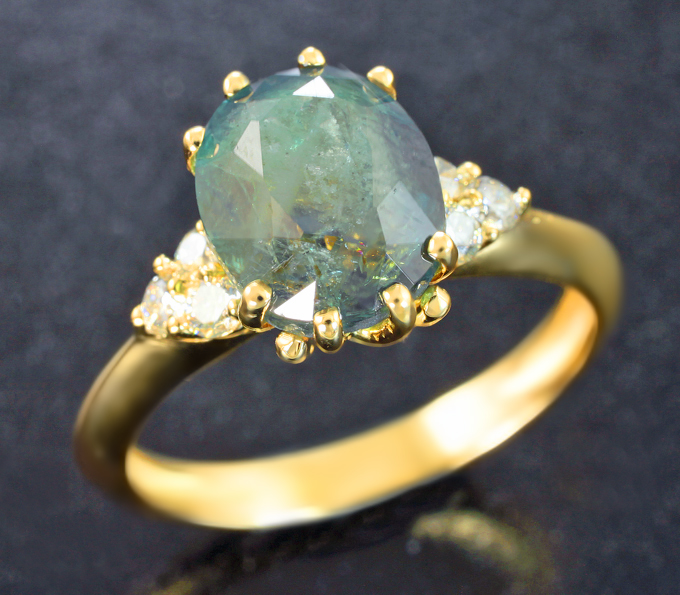 Кольцо с уральским александритом 3,12 карата и бриллиантами