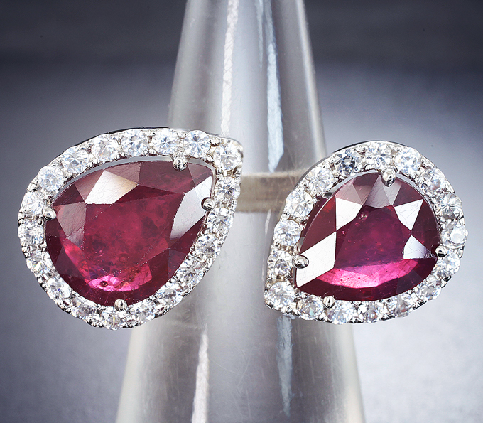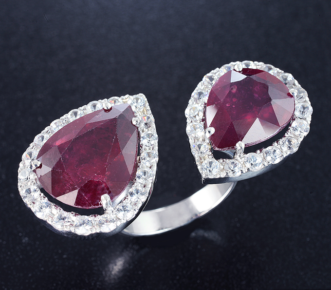 Кольцо с рубинами 10,7 карата и бесцветными цирконами