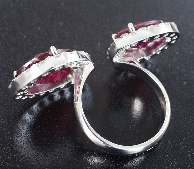 Вашему вниманию предлагается кольцо из белого золота 585 пробы c рубинами 10,7 карата и бесцветными цирконами! Размеры рубинов 12 х 10 мм и 14 х 10 мм, диаметр дополнительной инкрустации 2 мм. Площадка 35 х 16 мм, высота 5 мм. Вес изделия 8,5 г. Размер регулируемый: 16 и выше.