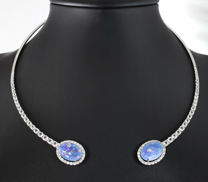 Колье с австралийскими триплет опалами 14,16 карата, бесцветными цирконами и топазами