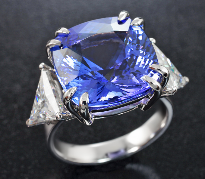 Кольцо с танзанитом 8,43 карата и муассанитами