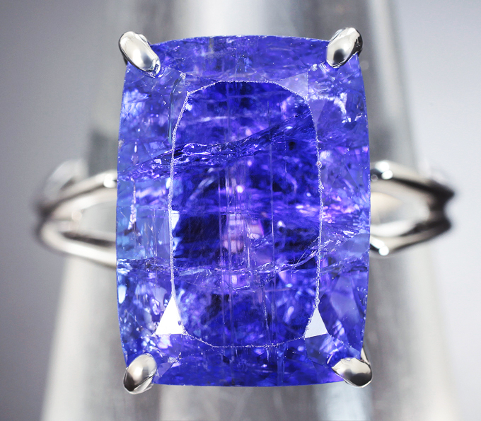 Кольцо с крупным насыщенным танзанитом 10,07 карата