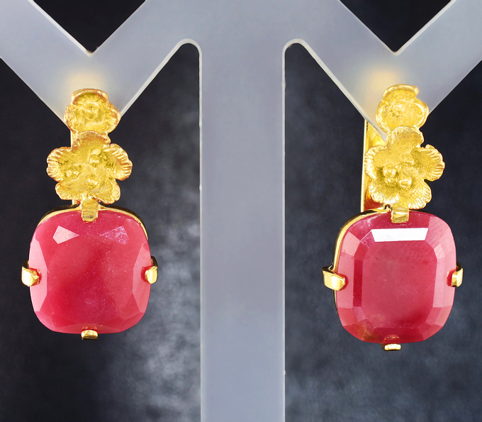 Вашему вниманию предлагаются серьги из стерлингового серебра (925 проба) с родонитами! Изделие позолочено. Размеры серег с петлей 24 х 12 мм. Вес пары 6,29 г. Ниже приводятся ювелирные характеристики вставок.