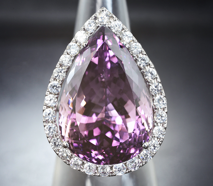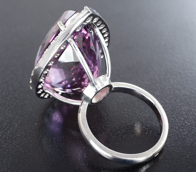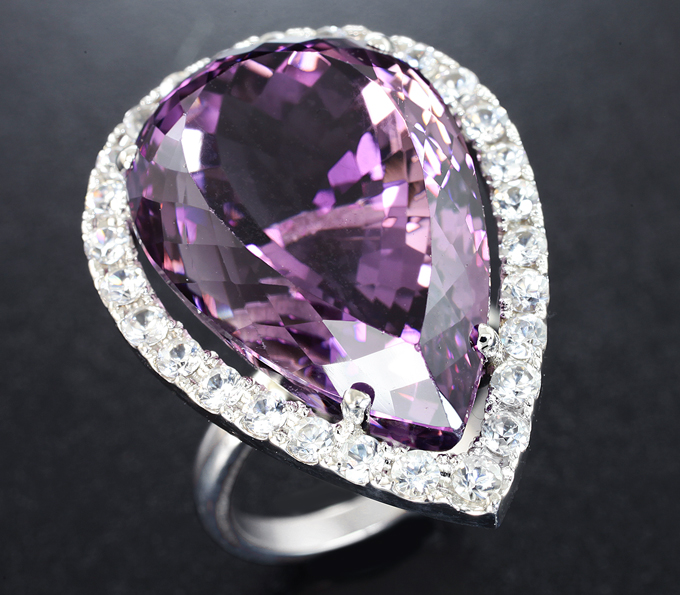 Кольцо с чистейшим аметистом 28,27 карата и бесцветными цирконами