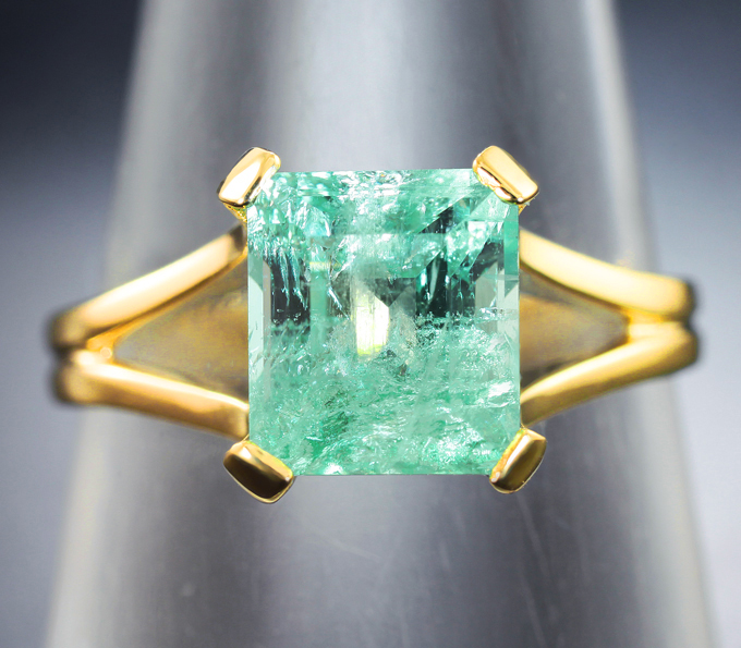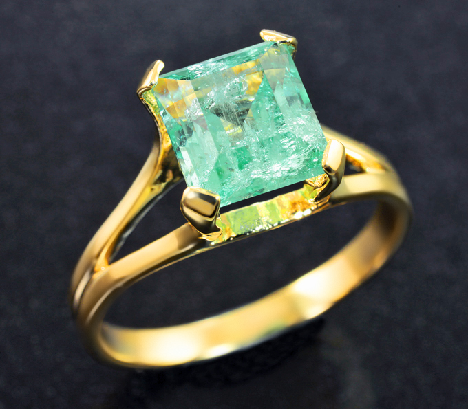 Вашему вниманию предлагается кольцо из желтого золота 585 пробы с уральским изумрудом! Площадка 9 х 8 мм, высота 8 мм. Вес изделия 2,98 г. Размер 18,5. Ниже приводятся ювелирные характеристики вставки.