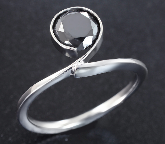 Кольцо с черным бриллиантом 1,38 карата