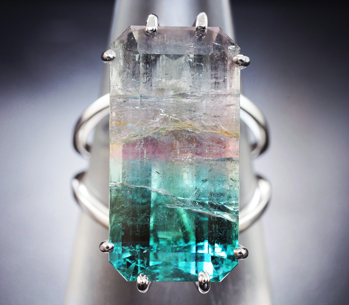 Кольцо с крупным полихромным турмалином 20,28 карата